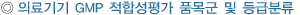 GMP Á¦µµÀÇ ÃëÁö ¹× ´Ù¾çÇÑ ÀÇ·á±â±âÀÇ Æ¯¼º µîÀ» °í·ÁÇÏ¿© ±âÁ¸¿¡ Àû¿ëÇØ ¿Â 39°³ ǰ¸ñ±º°ú À§ÇØ µî±Þ(1µî±Þ/2¡¤3¡¤4µî±Þ)À¸·Î ±¸ºÐÇÏ¿© ÀûÇÕ¼ºÆò°¡¸¦ ¹Þµµ·Ï ÇÔ |