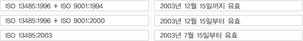ÀÌ´Â ISO 9001:2000 + ISO 13485:1996À» Àû¿ëÇÏ´Â °æ¿ì¿Í´Â ´Ù¸£´Ù.